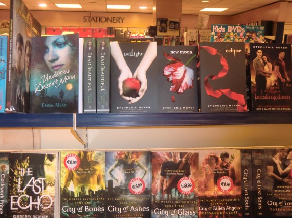 Here’s my book on the same shelf as Twilight with Cassandra Clare below. My friend works in a bookstore!
