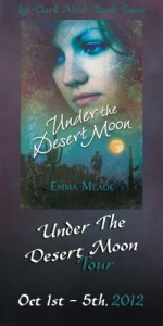 WOW, Emma, you are certainly going to be one busy lady!! I do hope you have loads of fun with it, though. Wishing you all the best with ‘Under the Desert Moon’. LOVE that your book is among Stephanie Meyers and Cassandra Clare. You must have that ‘good feeling’ going on. 😀 Hmph, I’m going to have to add your tour badge to my blog, too. The more the merrier. Actually, I’m going to e-mail you, lol. I may flood this comment box.